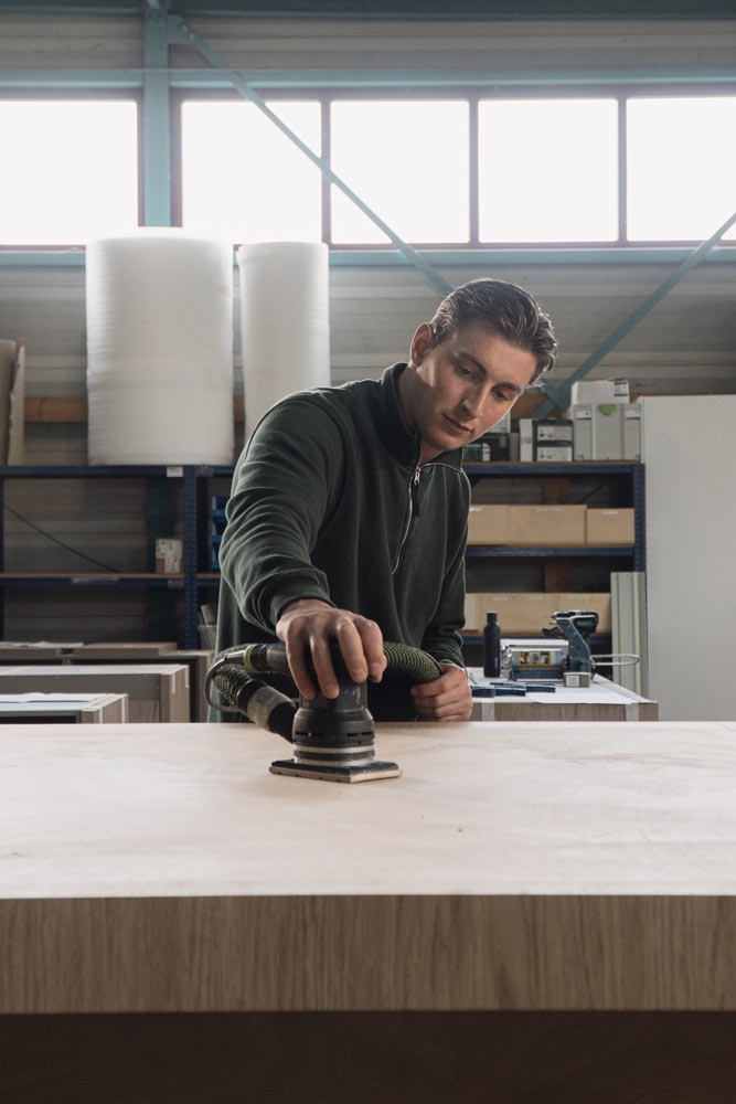 Het meeste werk gebeurt in onze eigen werkplaats, waar je altijd welkom bent om de vorderingen te bekijken. We houden je op de hoogte van het hele proces, zodat je kunt zien hoe jouw project stap voor stap vorm krijgt.